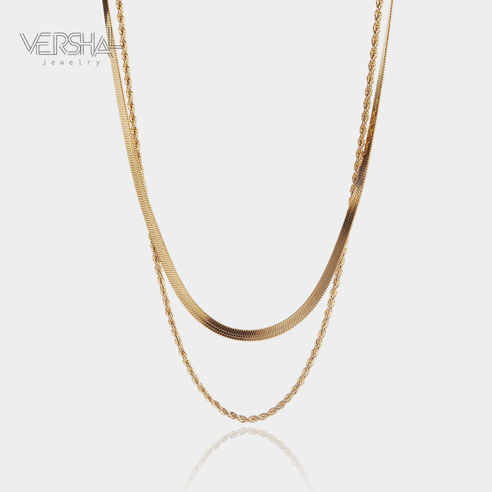 Collier r�tro double couche en acier inoxydable plaqu� or