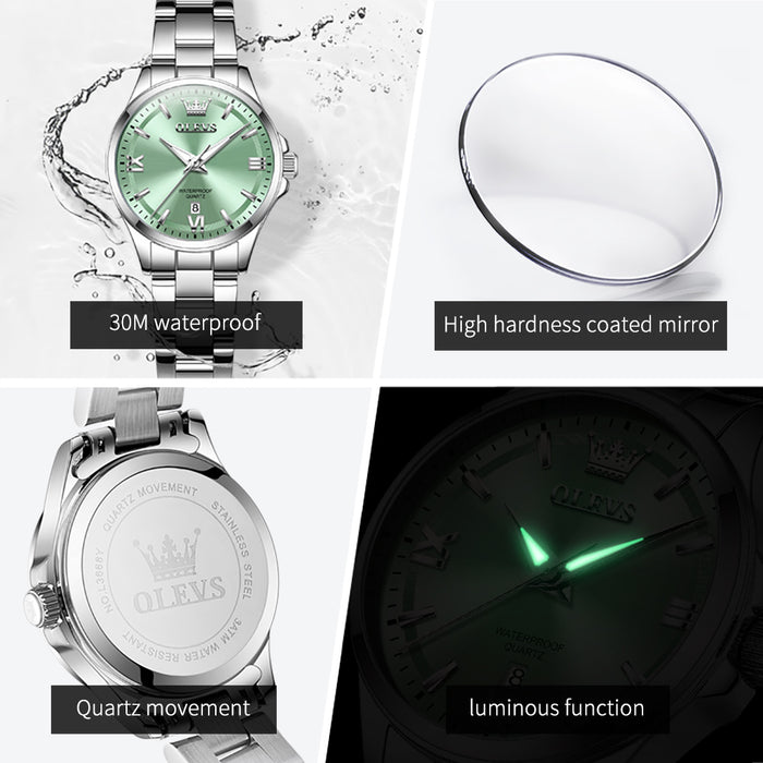 La montre OLEVS 3668 incarne la fusion parfaite entre élégance et fiabilité. Conçue pour les femmes modernes, elle présente un design raffiné avec un cadran clair et un bracelet en acier inoxydable. Son mouvement à quartz assure une précision remarquable, tandis que le verre renforcé offre une brillance et une résistance durables.