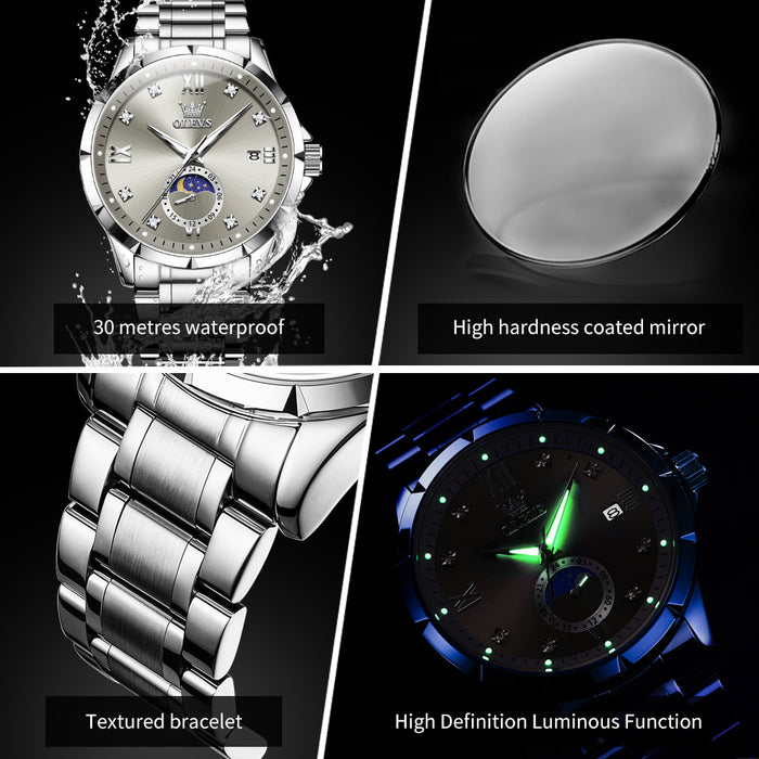 La montre OLEVS Analogique-Digitale allie élégance et performance. Son design moderne, son bracelet en acier inoxydable et son affichage hybride font d’elle un choix idéal pour les hommes exigeants. Parfaite pour un usage professionnel ou quotidien, elle offre des fonctions complètes telles que le calendrier, la phase de lune et l’étanchéité à l’eau.