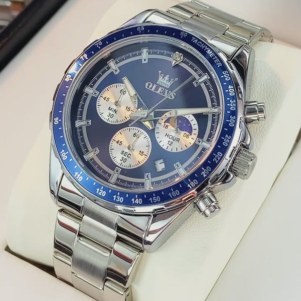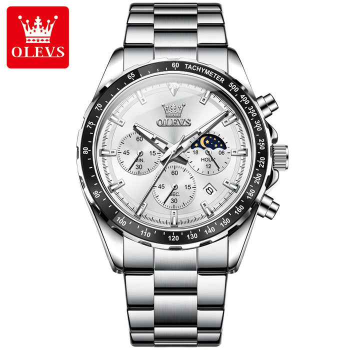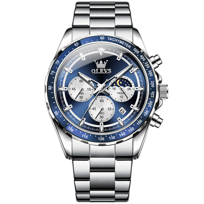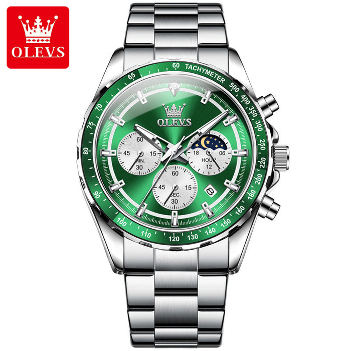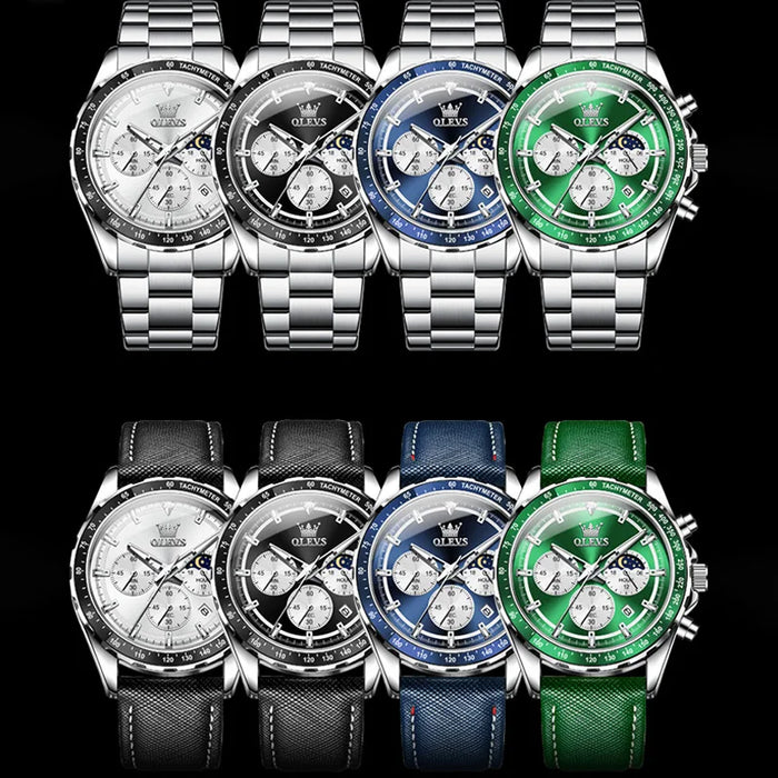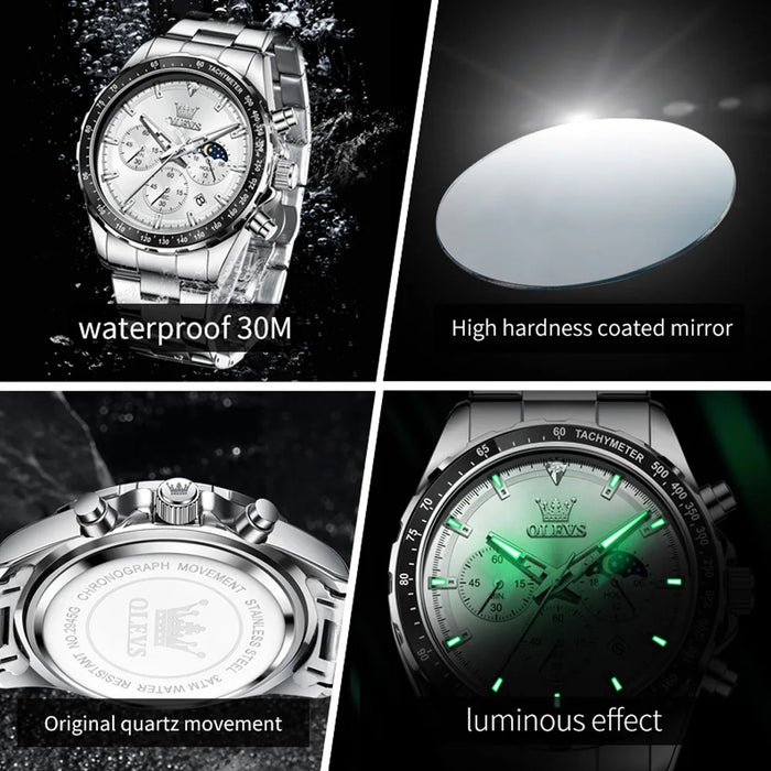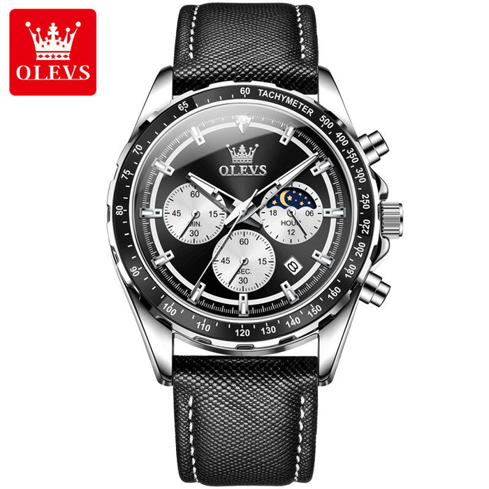 Montre Homme OLEVS 2945 Luxe Professionnel avec Chronographe et Phase de Lune
