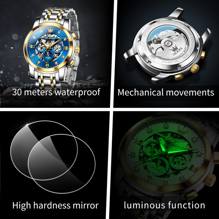 Montre Homme OLEVS 6721 Mécanique, Automatique et Élégante