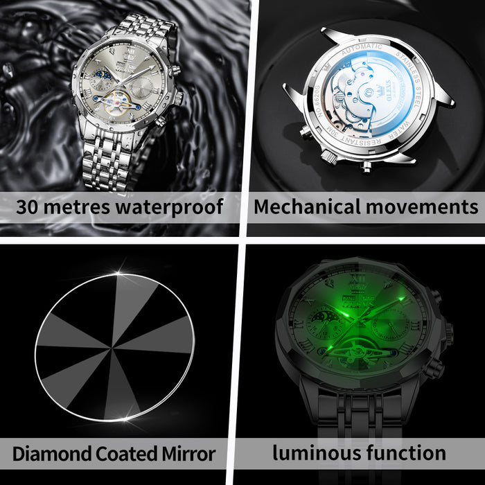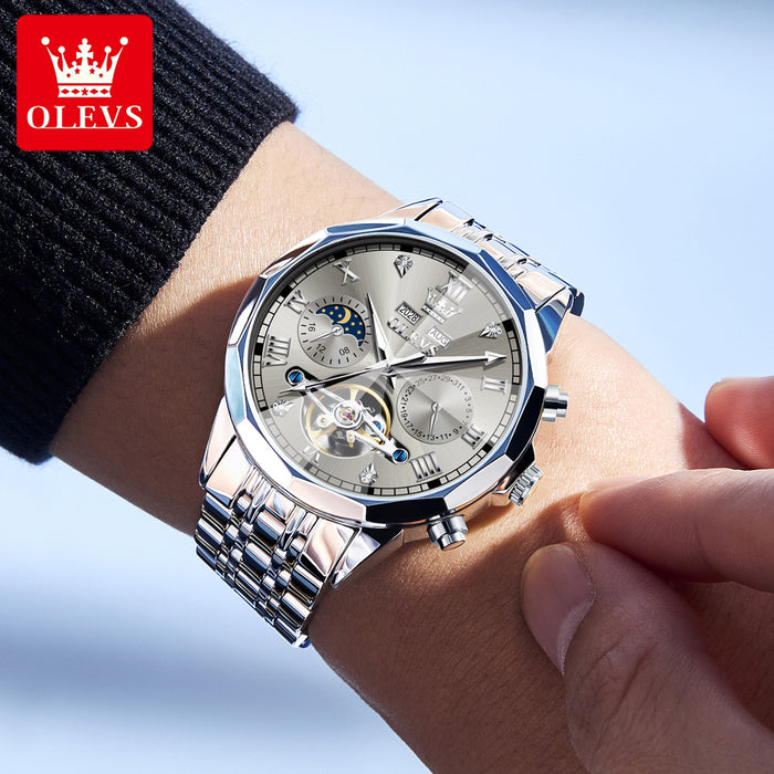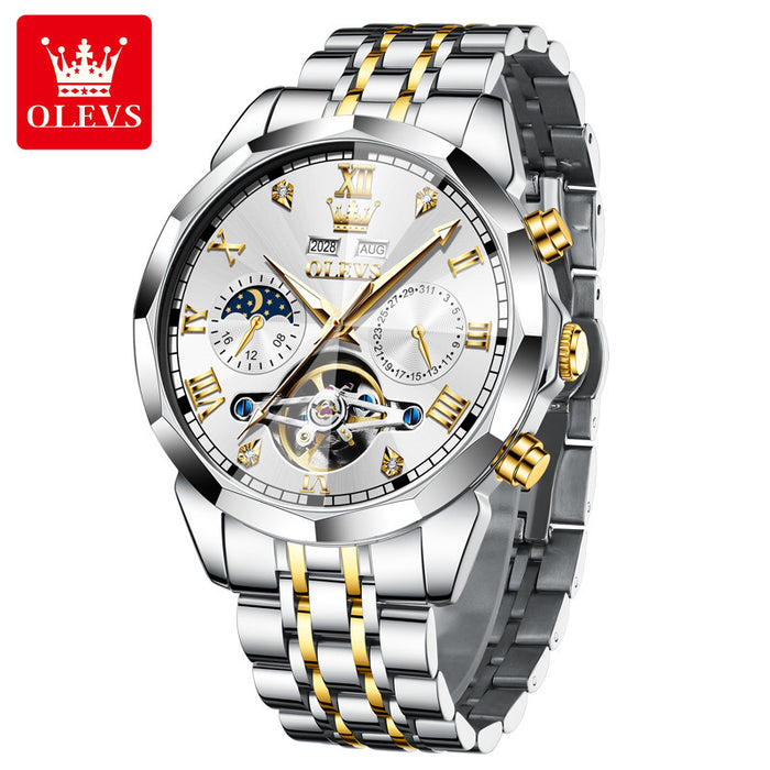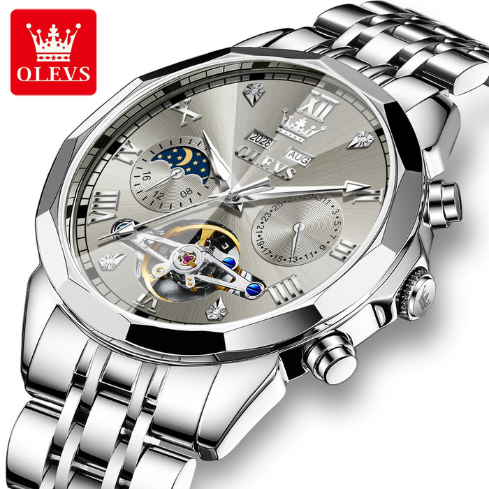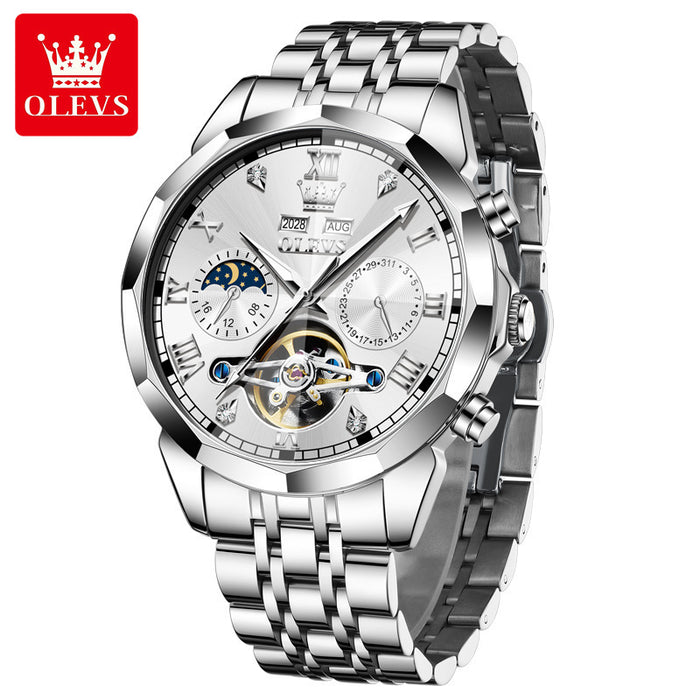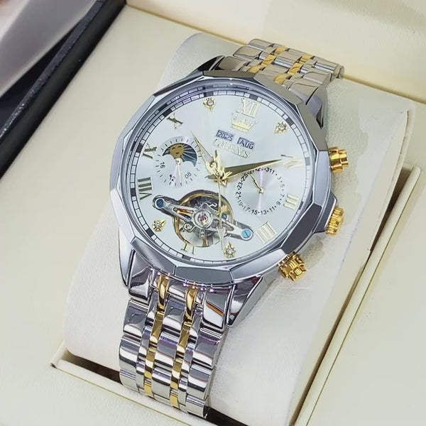La OLEVS 6620 incarne l’élégance intemporelle. Dotée d’un mouvement automatique de haute précision, d’un cadran à chiffres romains et d’une fonction phase de lune, cette montre associe harmonieusement tradition et innovation. Conçue en acier inoxydable haut de gamme, elle résiste à l’eau et s’adresse aux hommes exigeants à la recherche d’un style raffiné et fonctionnel.